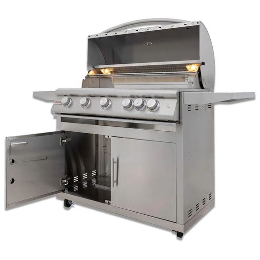 Blaze Grill Package - Premium LTE 40" 5-Burner Built-In Liquid Propane Grill, and Grill Cart in Stainless Steel