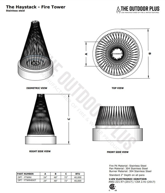60" Harbor Fire Pit (Off Set) by The Outdoor Plus - Free Cover Included