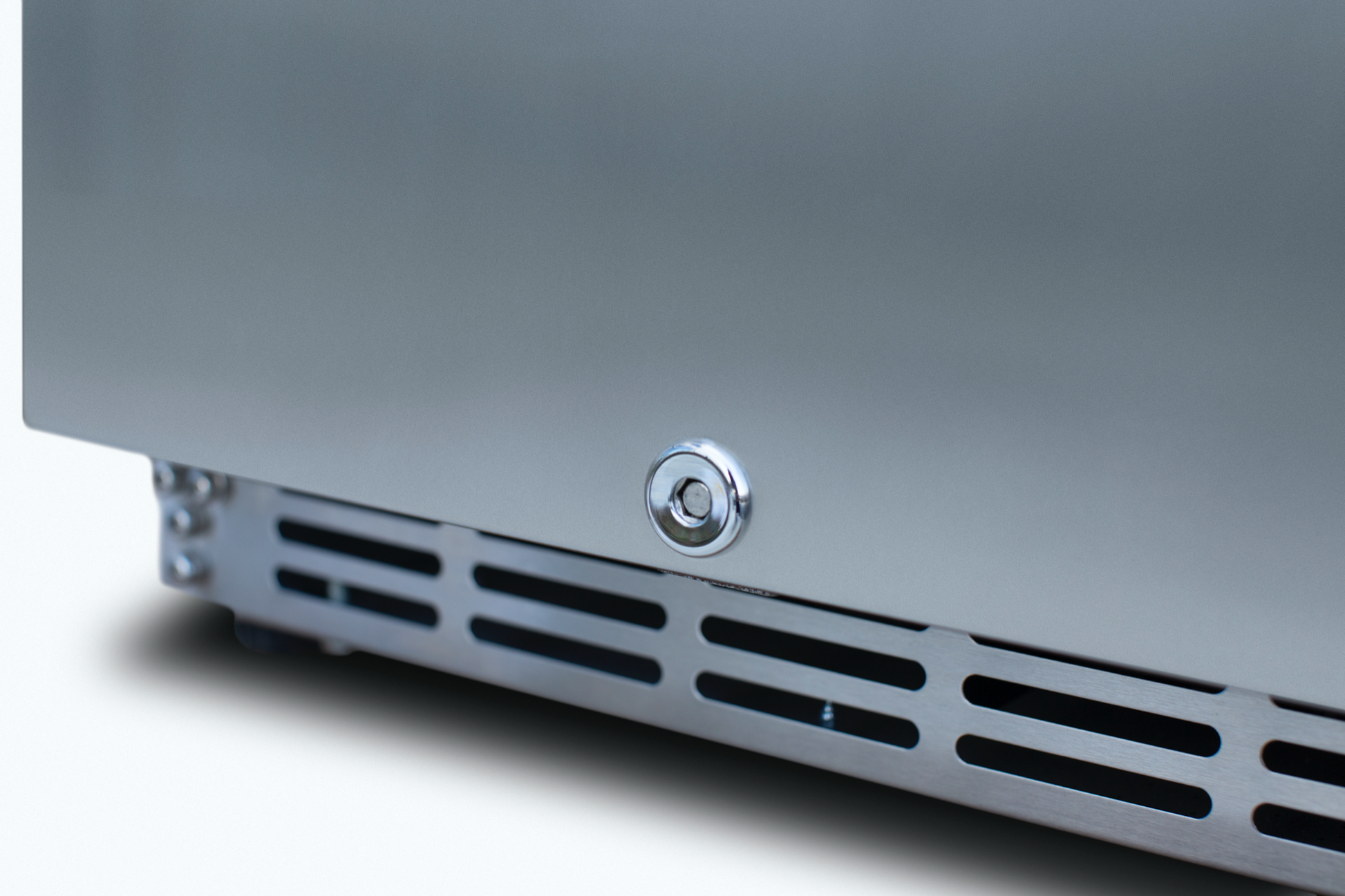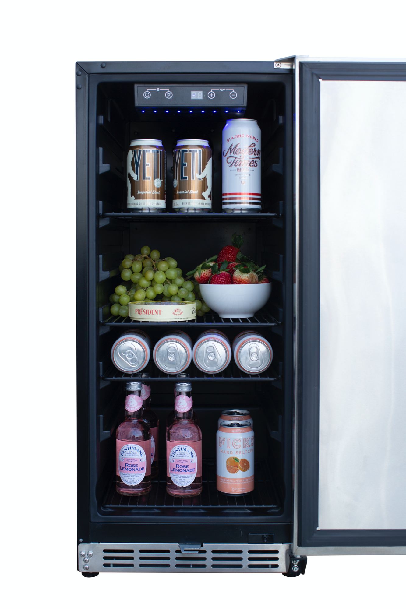 Premium refrigeration from Summerset Grills features slender, 15-inch outdoor refrigerators available with a stainless steel or glass door. With 3.2 cubic feet of storage, a temperature range of 32-50 degrees, and a Gold Standard Warranty, these appliances will help keep your food fresh, wine chilled, and beer cold, bringing the function of your indoor refrigerator outside in a compact sleek style.