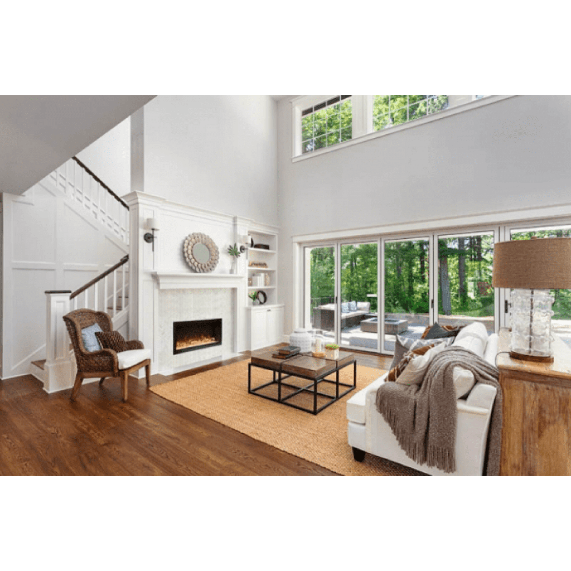 Amantii Symmetry XT models Smart WiFi Electric Fireplaces are available in 34", 42", 50", 60", 74", 88" and 100" sizes.