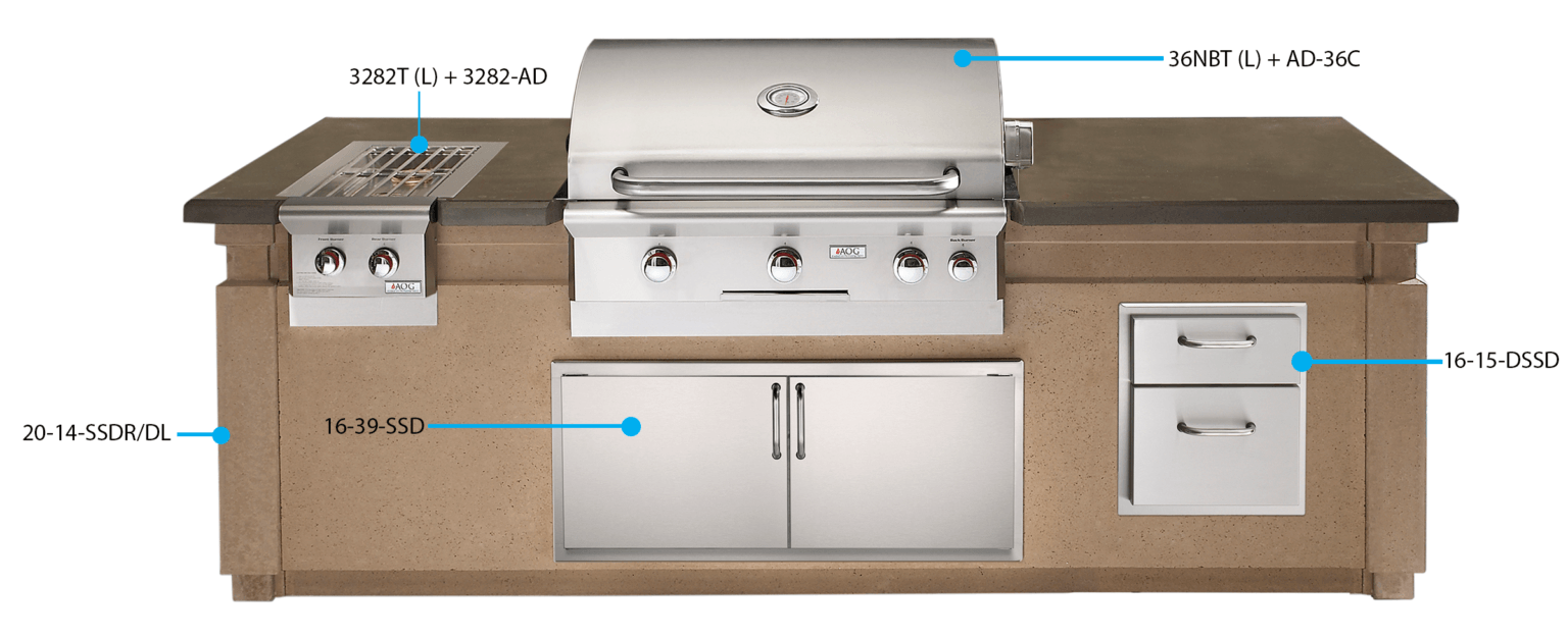 American Outdoor Grill Pre-Fab Island with Double Drawer Cut-out (ID790-CBD-108SM)