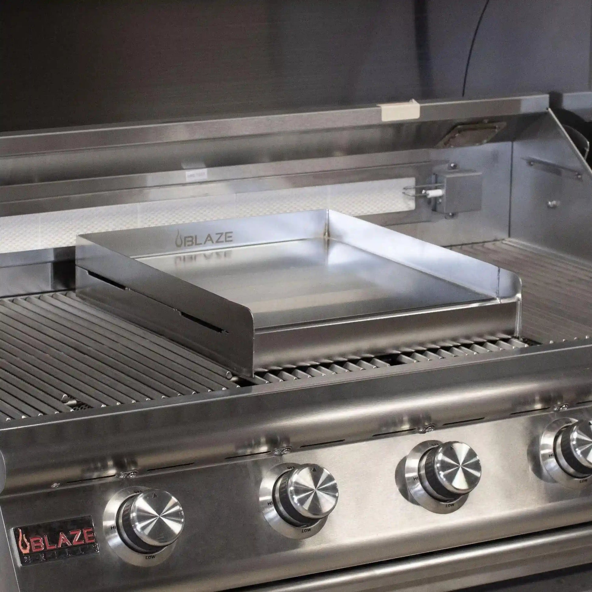 You asked, we listened. Upgrade your Blaze grill with the new highly requested griddle plate accessory! Customize your grilling experience by adding this 14-inch griddle plate to your Blaze grill. Sear steaks on your Blaze grill grates while also cooking smash potatoes, vegetables, or fried eggs on your griddle plate at the same time.