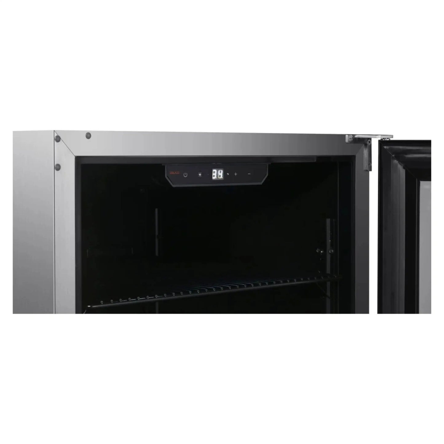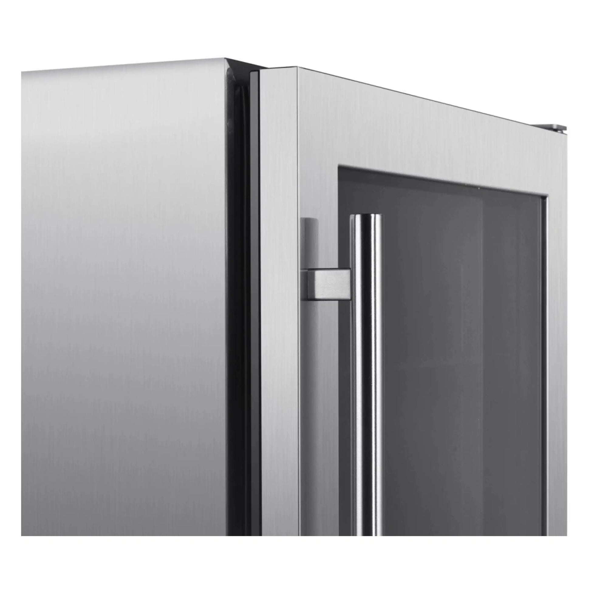 - Stainless Steel exterior with a glass door, reversible handle mount and a door ajar alarm