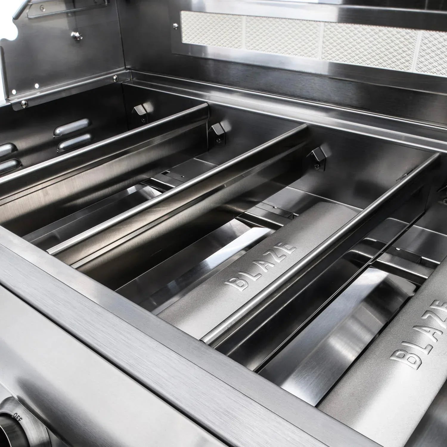 - Easy-to-Assemble BBQ Island paired with a Blaze Premium 32-Inch 4-Burner LTE Series Propane Gas Grill (BLZ-4LTE2-LP)