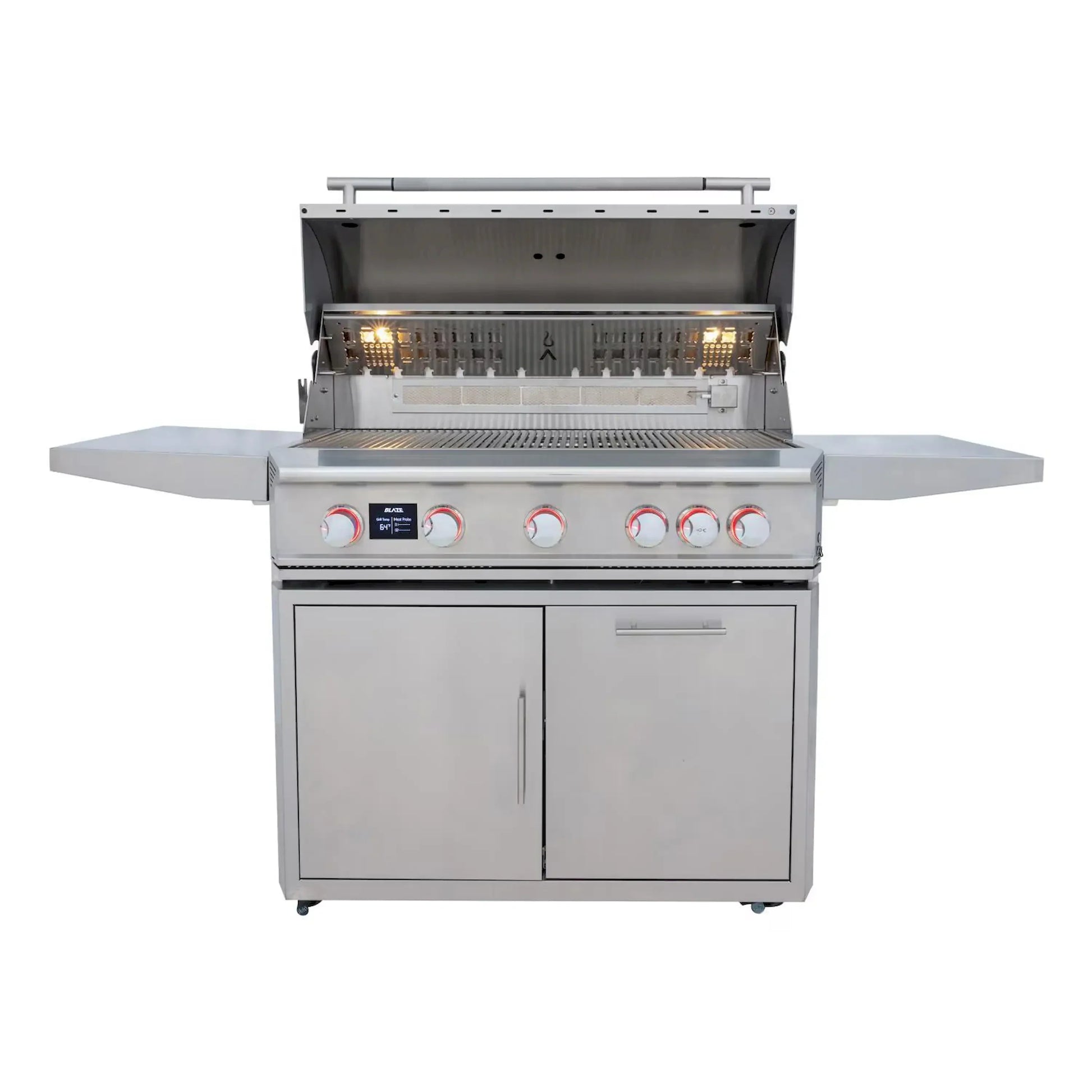 Blaze Grill Package - LTE PRO 40" 5-Burner Natural Gas Grill with Digital Temperature Screen and Rear Infrared Burner, and Grill Cart in Stainless Steel (AP2-5LTEPRO-NG)