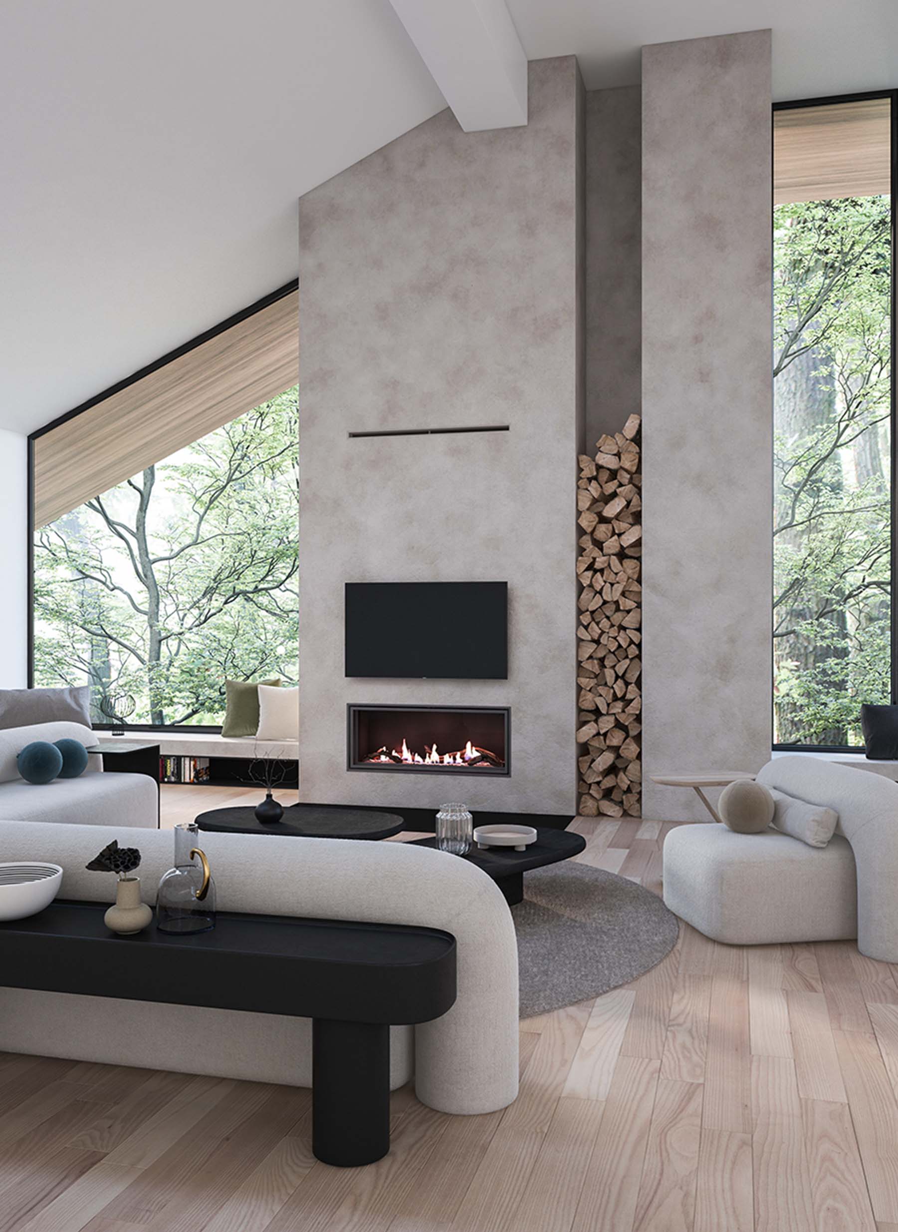 Our engineers created an efficient fireplace with a unique “Heat Transfer System” designed to achieve cool to touch surfaces allowing for TV mounting directly above. The Clarity 4416 has 3 burners and utilizes a split flow valve which allows you to turn off the 2 rear burners while leaving the front burner lit meaning you can reduce heat output by 75%. The fireplace can be controlled with our standard remote control or via your “Smart” devices. The Clarity 4416 comes with our exclusive wave pattern burner framed with a reflective black glass floor which multiplies the effect of the flame further adding to the ambiance. You can choose our “Reflections” firebox liner kit with black glass rear panel and mirrored glass sides to fill the firebox with flame from every angle. Alternatively, you can choose to customise your fireplace by adding our exclusive, full colour illuminated custom artwork rear panel. You can choose from a traditional style log set or a modern river washed log set.