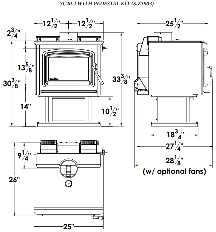 Versatility You can customize your Sirocco match the décor of your home: Choose between the pedestal version with standard ash drawer or cast iron leg version with optional ash drawer. All handles are fitted with ash hardwood and are coated in black enamel. The addition of the optional satin trim and satin handles on the cast iron door will enhance the look even further. The standard convection deck helps increase your stoves performance, especially when coupled with an optional fan kit.