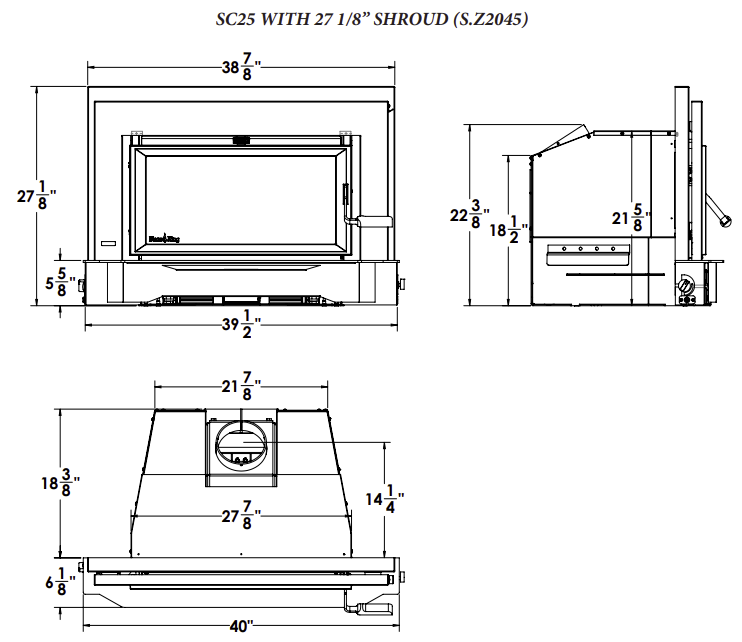 The Sirocco 25 is a medium sized fireplace insert. At 2.3 cu. ft., the firebox will take up to a 22" log and can deliver warmth for up to 25 hours on low. The Sirocco 25 is very clean and efficient and can heat from 400 - 1,800 sq. ft. This flush insert extends to only 2.6 inches from the face of the fireplace to the door opening, helping to keep hearth protection to a minimum. The door features a large, 24" x 11", wide-screen glass viewing area with a nickel plated and hand made olive-wood door handle. Attention to detail is evident from the layered surround panel to the unique control system that allows you to select the heat you want.