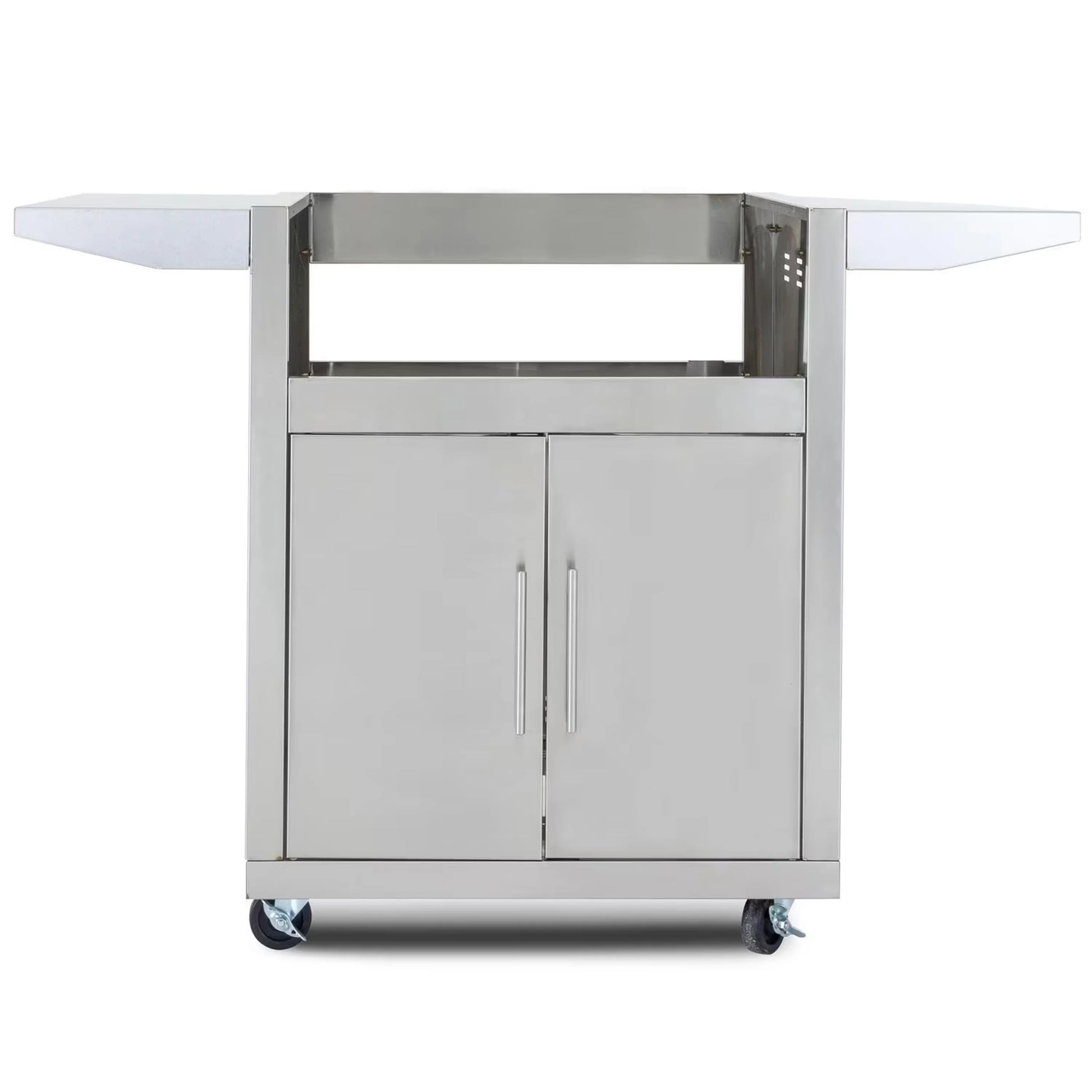 The Blaze stainless steel cart is specifically designed to house the Blaze 26-Inch Pizza Oven. The stainless steel construction ensures long-lasting durability for years of outdoor use and four heavy duty caster wheels allow you to easily relocate the grill whenever necessary. The two stainless steel side shelves help keep your BBQ tools at hand and provide a convenient work area while you cook. The Blaze cart also features two front doors with straight handles to access the cabinet below the grill where you can store your propane tank, grill cover and BBQ accessories. The doors also have soft close hinges to prevent them from slamming shut. Some assembly required.