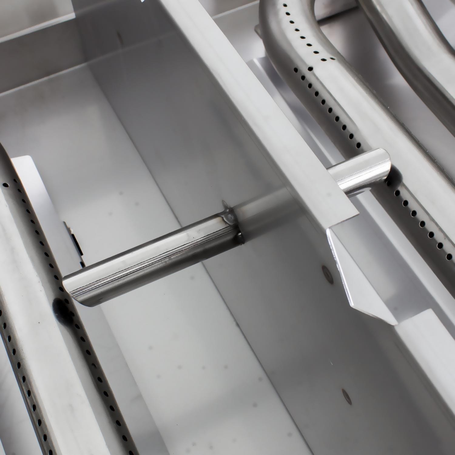 - Stainless steel U-shaped burners provide exceptional even heat across the griddle surface
