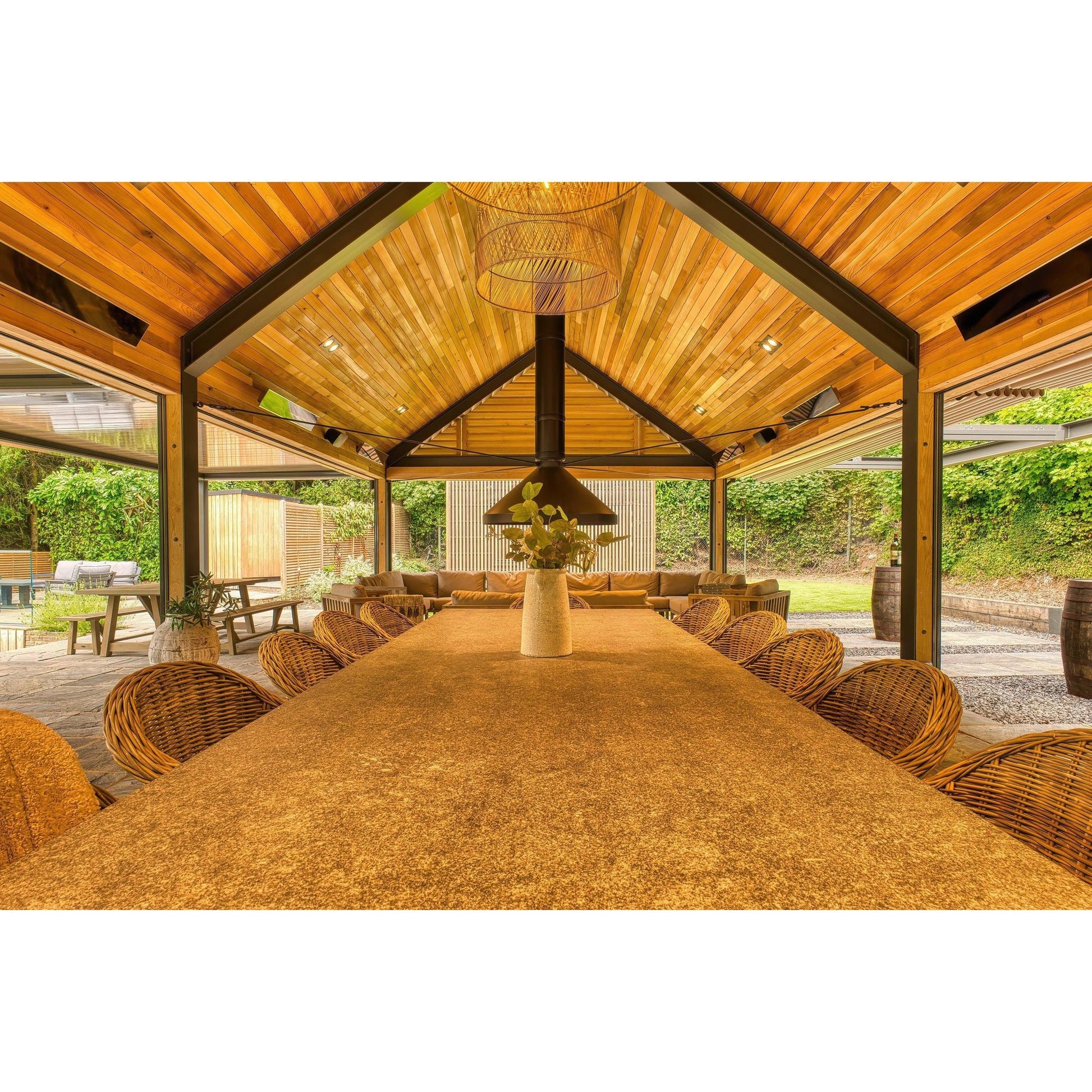 Built with premium stainless-steel construction, complete with a sleek ceramic glass screen and a fully enclosed body, the Platinum Electric heater provides even heat distribution to outdoor spaces.