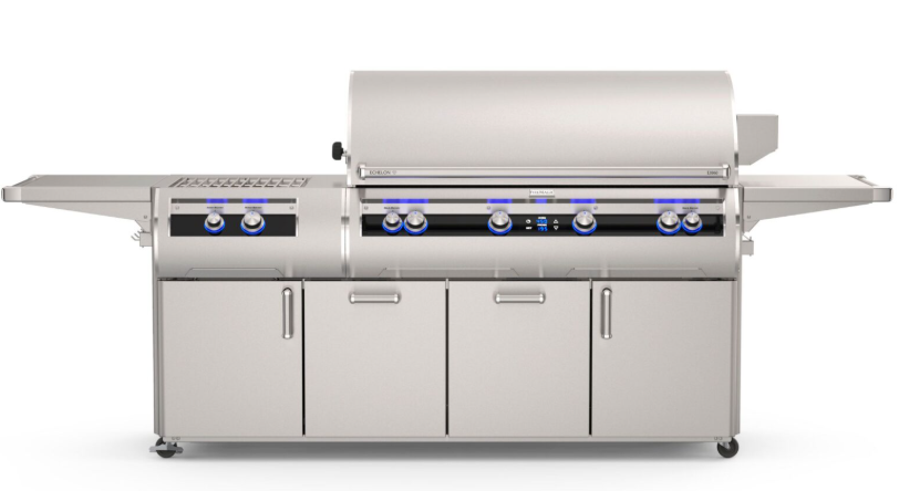When only the best will do, our flagship Fire Magic® Echelon Diamond combines the ultimate in performance, beauty and innovation. With sleek lines highlighted by a modern black glass control panel including a digital touchscreen operation with blue tooth remote capability. Cast stainless steel burners power an innovative heat distribution system topped with patented Diamond Sear cooking grids to truly elevate the outdoor cooking experience. The Echelon Diamond defines luxury in grilling.