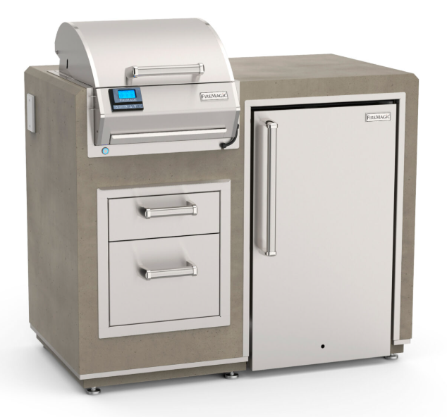 Fire Magic Refrigerator With Stainless Steel Door (3598-DR) and Stainless Steel Double Drawer (53802SC) shown.