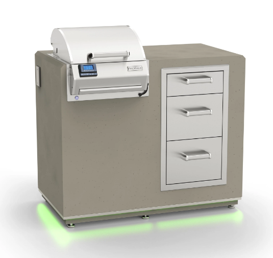 Fire Magic 36" x 44" Electric Grill Island Bundle w/ Triple Drawer ID251-D-44SM provides quick, clean, and easy grilling. Great for patios with limited space, or where gas is unavailable. It is constructed out of all 304 stainless steel. There is a large heating element for faster heating up to 300°. The digital thermometer includes a thermostatic control and a meat probe for precision grilling.