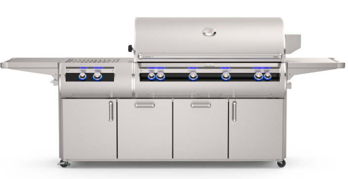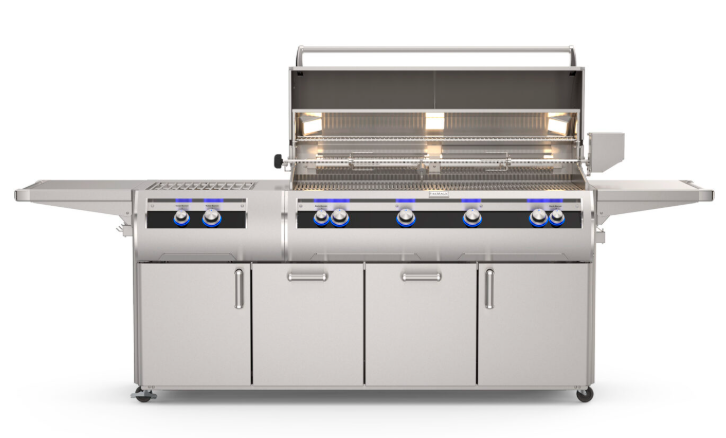 When only the best will do, our flagship Fire Magic® Echelon Diamond combines the ultimate in performance, beauty and innovation. With sleek lines highlighted by a modern black glass control panel, choose analog or digital touchscreen operation with blue tooth remote capability. Cast stainless steel burners power an innovative heat distribution system topped with patented Diamond Sear cooking grids to truly elevate the outdoor cooking experience. The Echelon Diamond defines luxury in grilling.