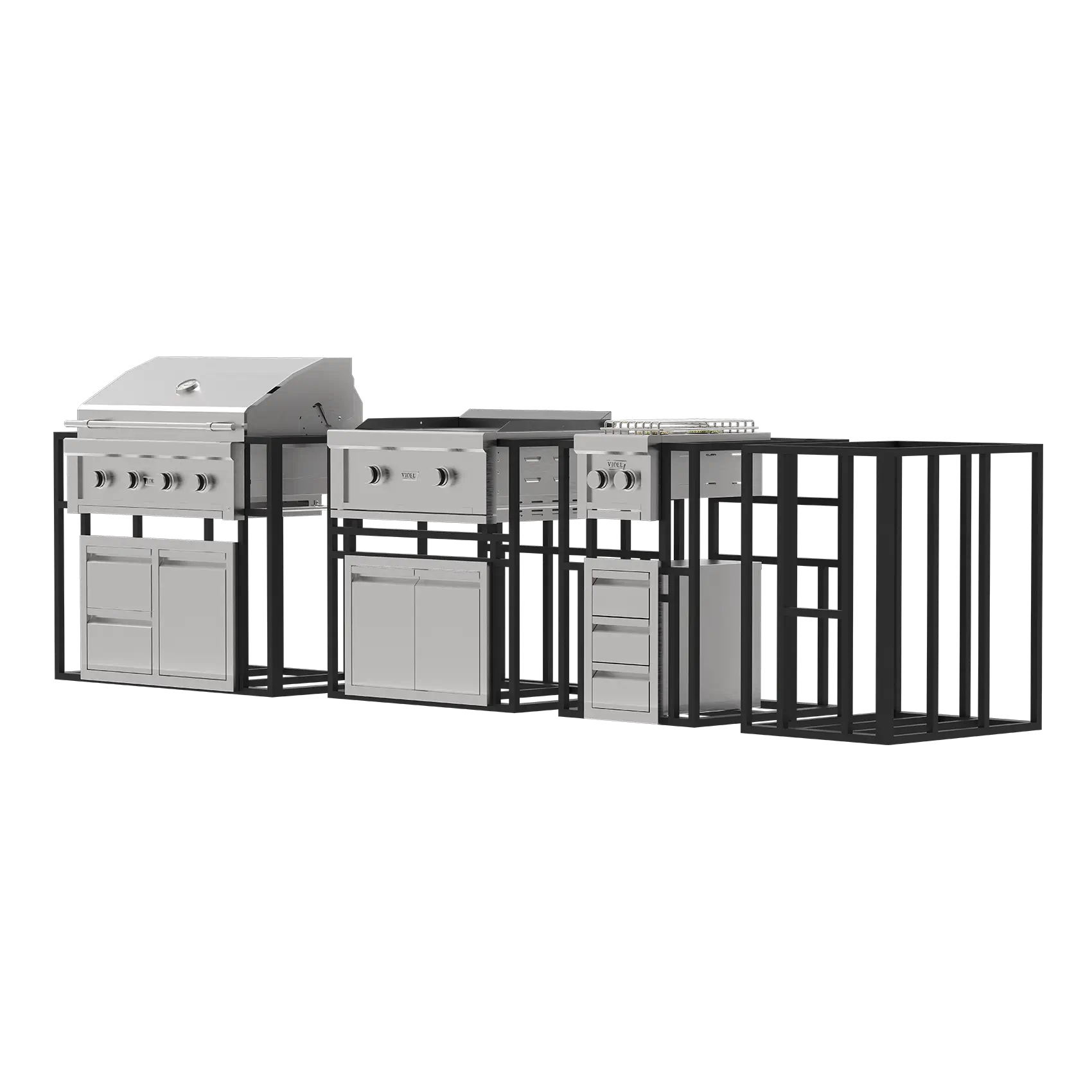 - Knock Down (KD) BBQ Islands: Includes 48”, 36”, and two 24” modular island units. Designed for easy assembly and customization with ample space for prepping, serving, and entertaining.