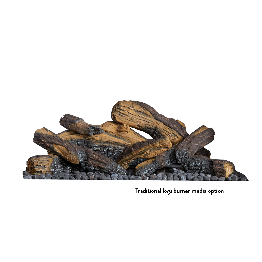 - Choice of Traditional Logs, Beach Fire, or Birch logs media treatments