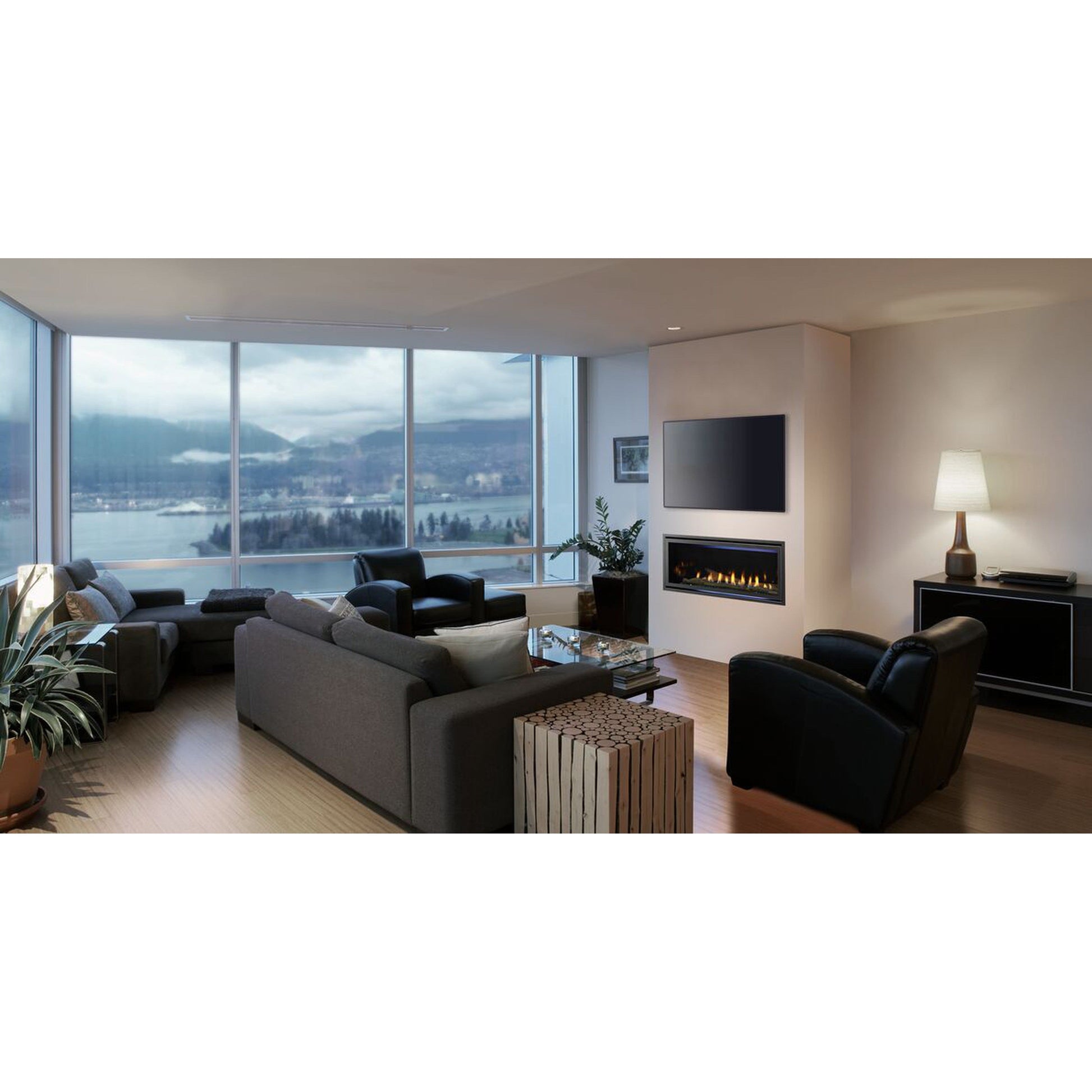 - Optional Passive Heat™ disperses heat naturally (no fan), reducing wall temperatures for TV placement 12" above the fireplace without a mantel