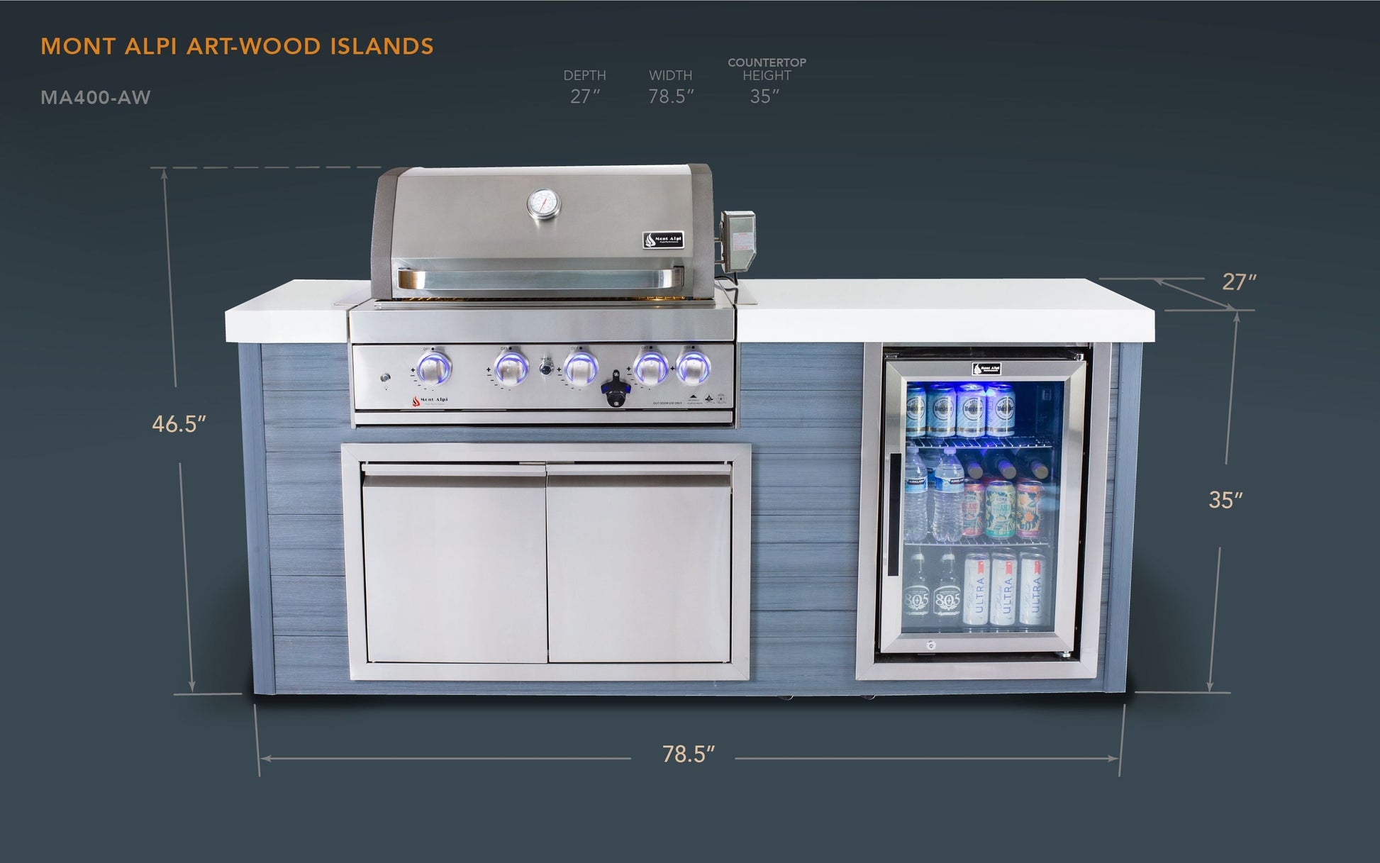 Mont Alpi 4-Burner Stainless Steel Artwood Outdoor Island Grill - MA400-AW