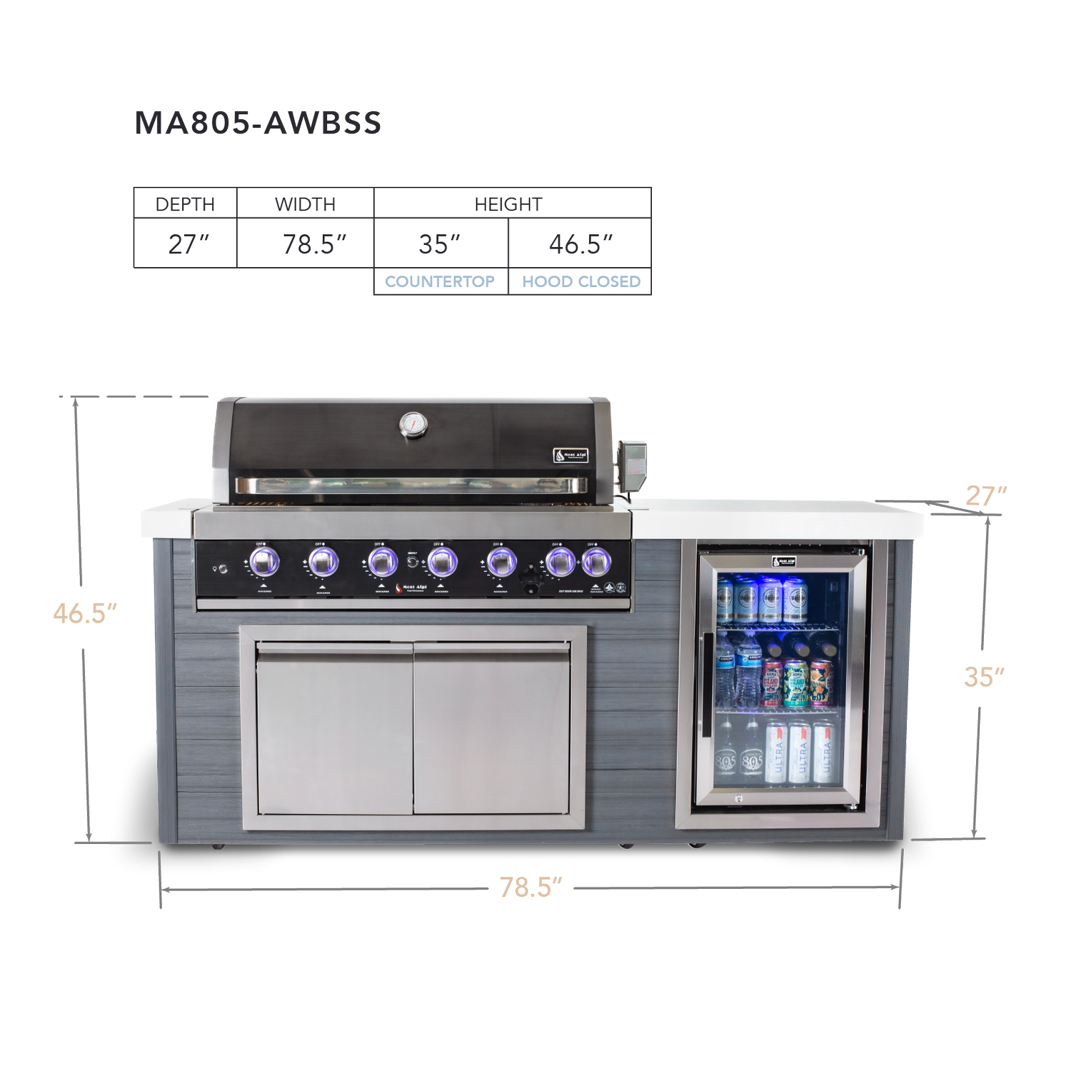 Mont Alpi Artwood 6-Burner Black Stainless Steel BBQ Grill Island - MA805-AWBSS
