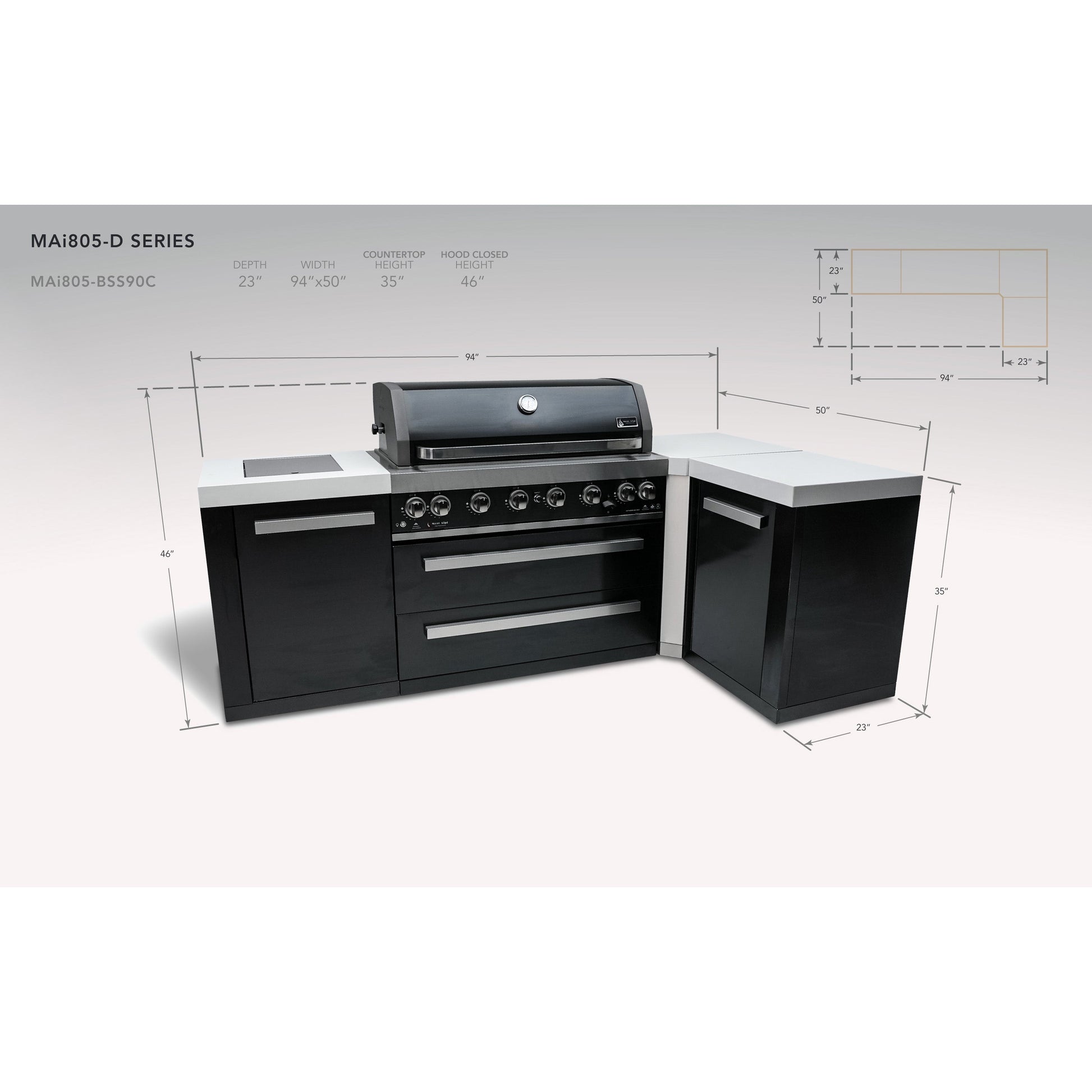 Mont Alpi 805 Black Stainless Steel BBQ Grill Island with 90 Degree Corner - MAi805-BSS90C