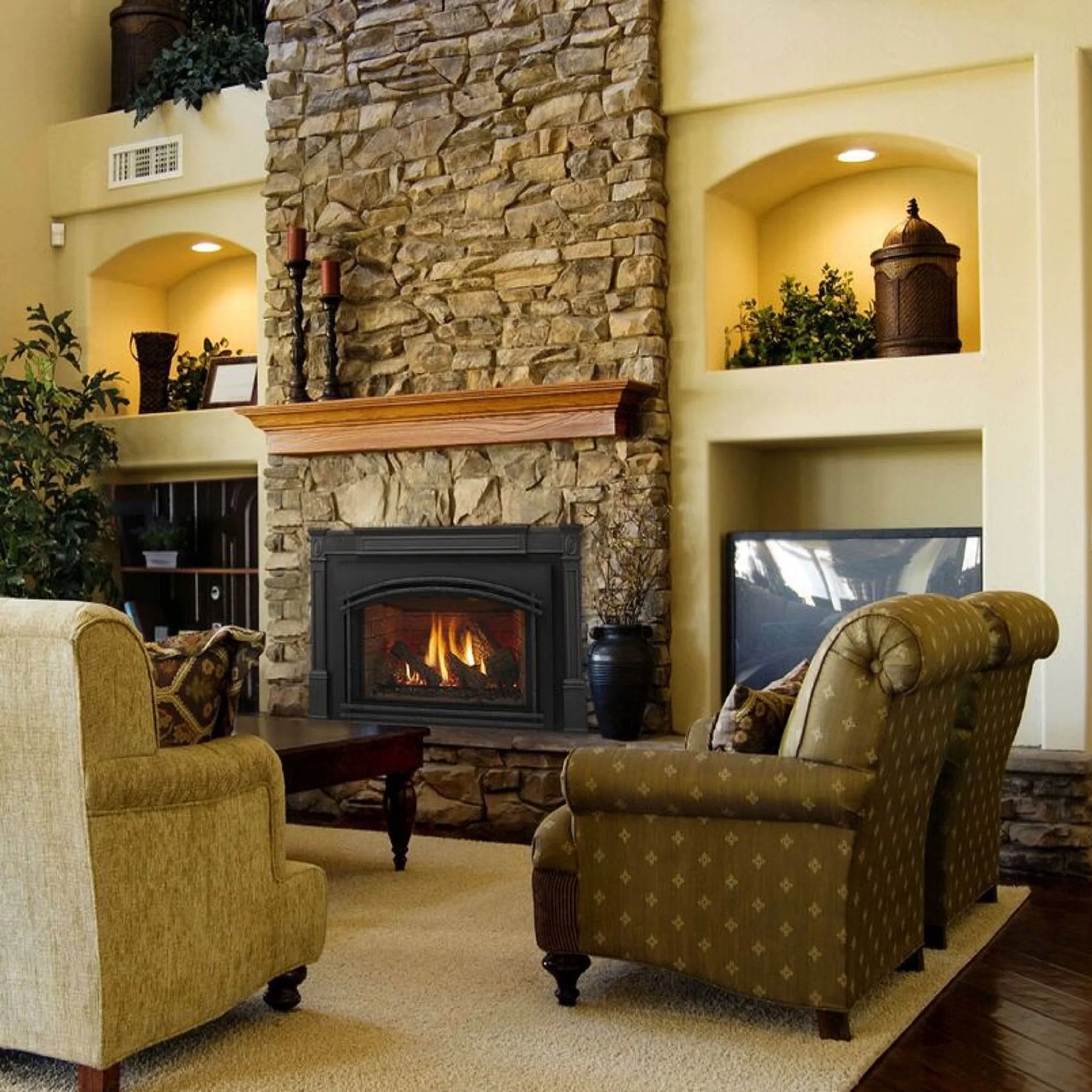 Quadra-Fire gas fireplace inserts turn your drafty inefficient wood fireplace into a beautiful & efficient heat source. With no wood to haul and no mess to clean up, the Excursion Series gas inserts are even easier than you would have ever thought. You will enjoy reliable and fast heat with a powerful fan and efficient steel heat exchange system delivering performance you can feel. With multiple sizes and styles from which to choose, the Excursion Series will transform your room from underused to unbelievable in as little as a day. Controlled by the standard touchscreen remote or the optional IntelliFire® app.