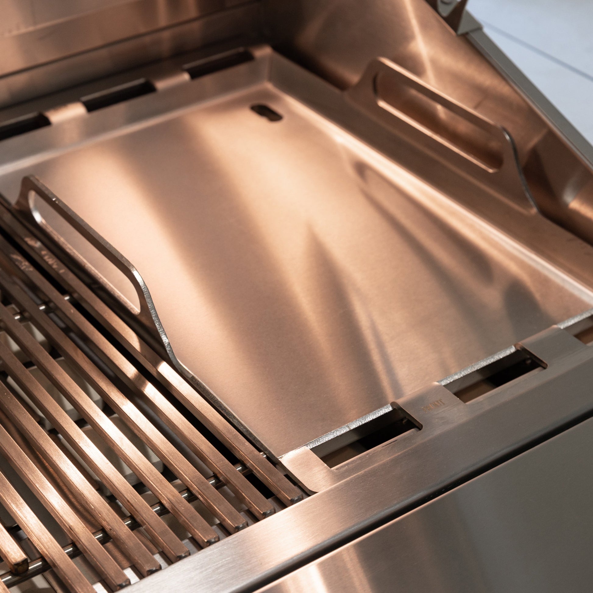 Every flame tells a story. The Quest is designed for those who live to grill and never settle, bringing commercial-grade power and precision to the forefront. With 18,000 BTU burners that deliver flawless heat control and the included rib rack, smoker box, griddle plate, multi-position warming racks, and rotisserie kit for complete versatility, expect every meal to be an experience worth remembering. Interior halogen lights and waterfall LED accents illuminate late-night cooks, while bezel lighting shifts from white to red, providing a clear visual cue when burners are on. Crafted from durable #304 stainless steel and backed by the Gold Standard Lifetime Warranty, the Quest is built for those inspired by craft, flavor, and the pursuit of perfection.