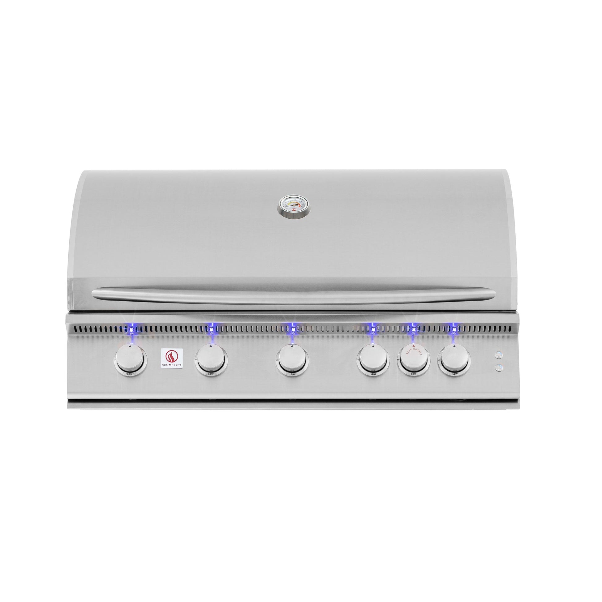 The Sizzler Pro 40″ packs tons of features on top of quality construction and affordability. Upholding the same sleek design as our classic Sizzler along with the added Exterior LED Lights, this grill really sets itself apart. The interior is also vamped up with 14,000 BTU Cast Burners, Heat Zone Separators, and Interior Cooking Lights to make for a premium grilling experience from top to bottom.