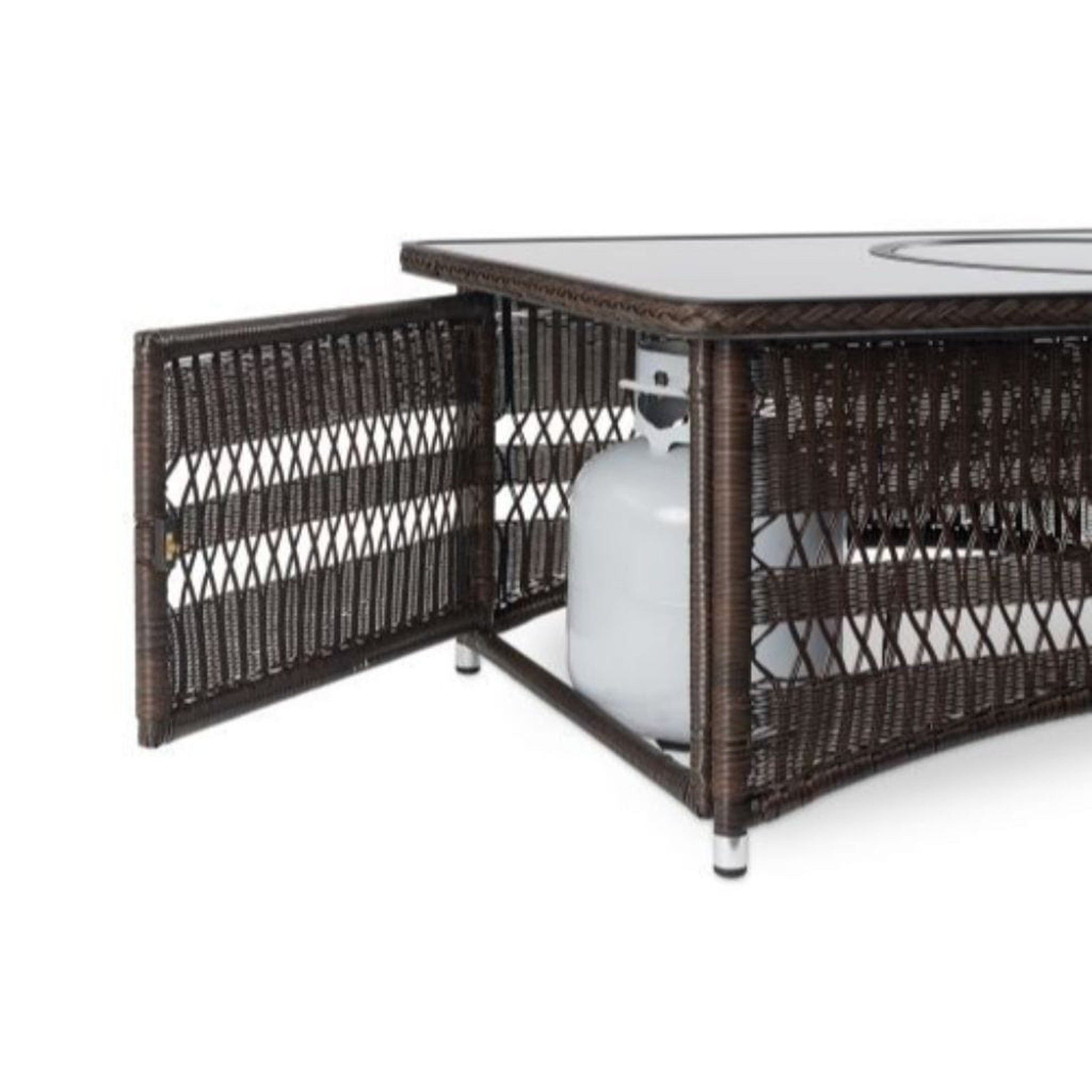 Naples Rectangular Gas Fire Pit Table features a 20" round Stainless Steel Crystal Fire Burner. With just the push of a button, a beautiful glowing fire will appear atop a bed of tempered, tumbled glass.
