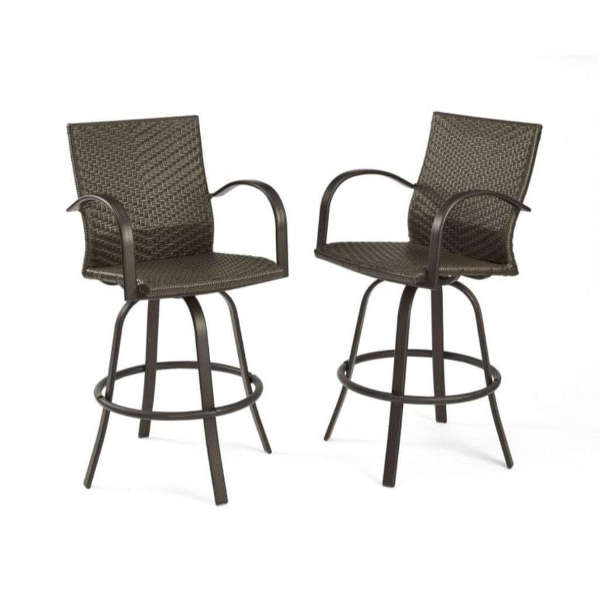 The heavy-duty powder-coated metal frames offer long term durability while the outdoor-rated resin wicker features a beautiful Leather color to integrate with any patio decor. Create your own personal paradise and be sure it's complete with these (2) Naples Bar Stools from The Outdoor GreatRoom.