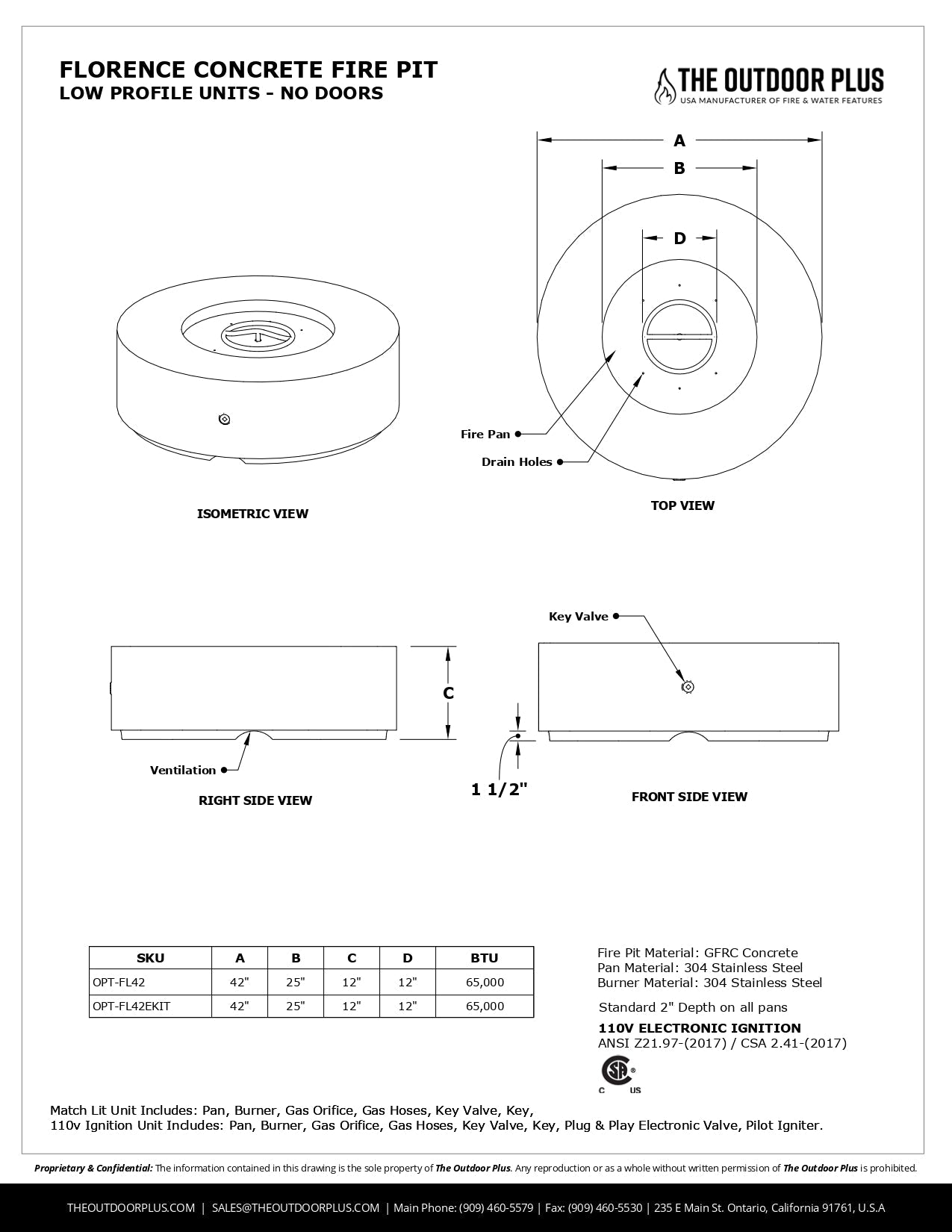 - Dimensions: Diameter: 42", Height: 12", Burn Area Diameter: 25".
