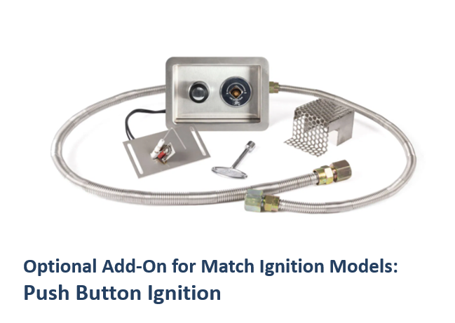 - 12V Swimming-Pool-Certified Electronic Ignition System that lets you turn your fire features on and off with the flick of a switch or with a Remote Control (sold separately). It has been tested to stay lit in the rain and high winds, and will re-light automatically in case it blows out.