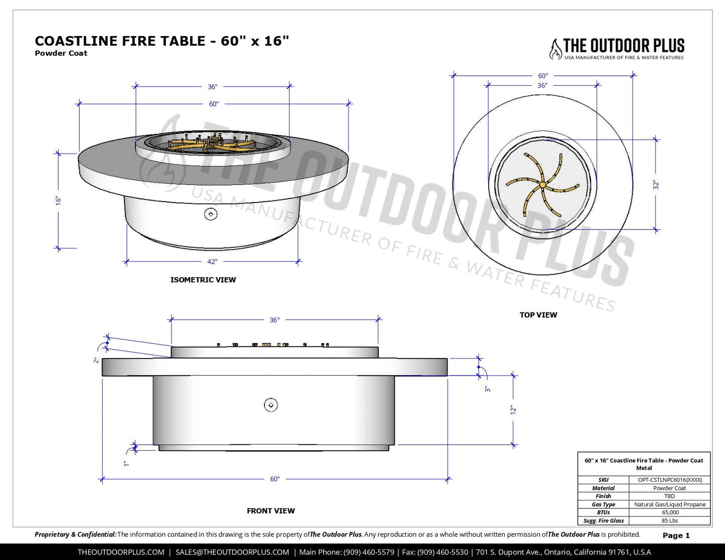Coastline Fire Table by The Outdoor Plus - Free Cover Included