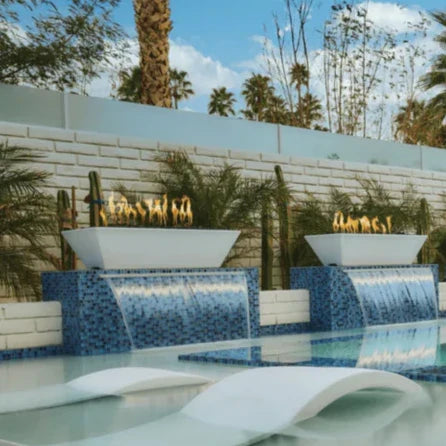 Indulge in the captivating allure of the Maya Linear Fire & Water Bowl, a rectangular tapered masterpiece that emanates a mesmerizing flame and boasts a wide spillway. This exceptional fire and water feature adds a touch of elegance to your poolside, creating a stunning ambiance for your outdoor space.