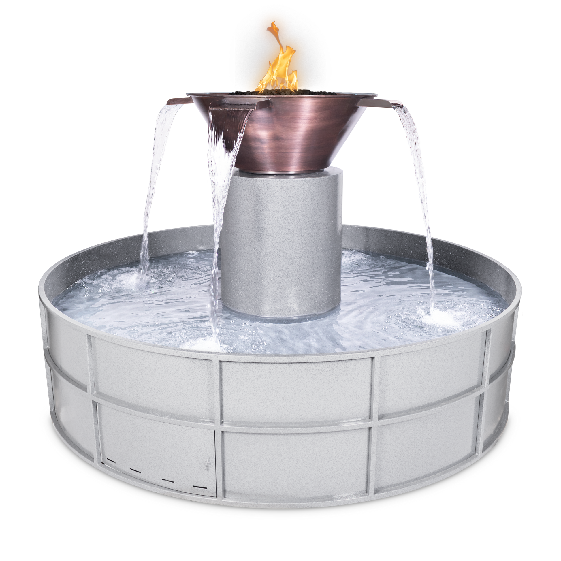 The Olympian Round 4-Way Copper Fire & Water Bowl is designed for both aesthetics and practicality in your garden. Ready to finish with your choice of materials like stone, brick, or concrete, it can be installed above or in-ground.