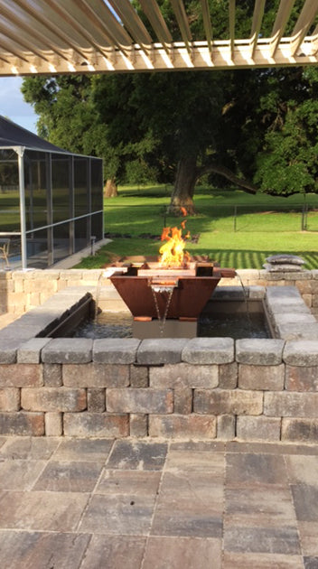 Olympian Square 4-Way Copper Fire & Water Bowl by The Outdoor Plus - Free Cover Included