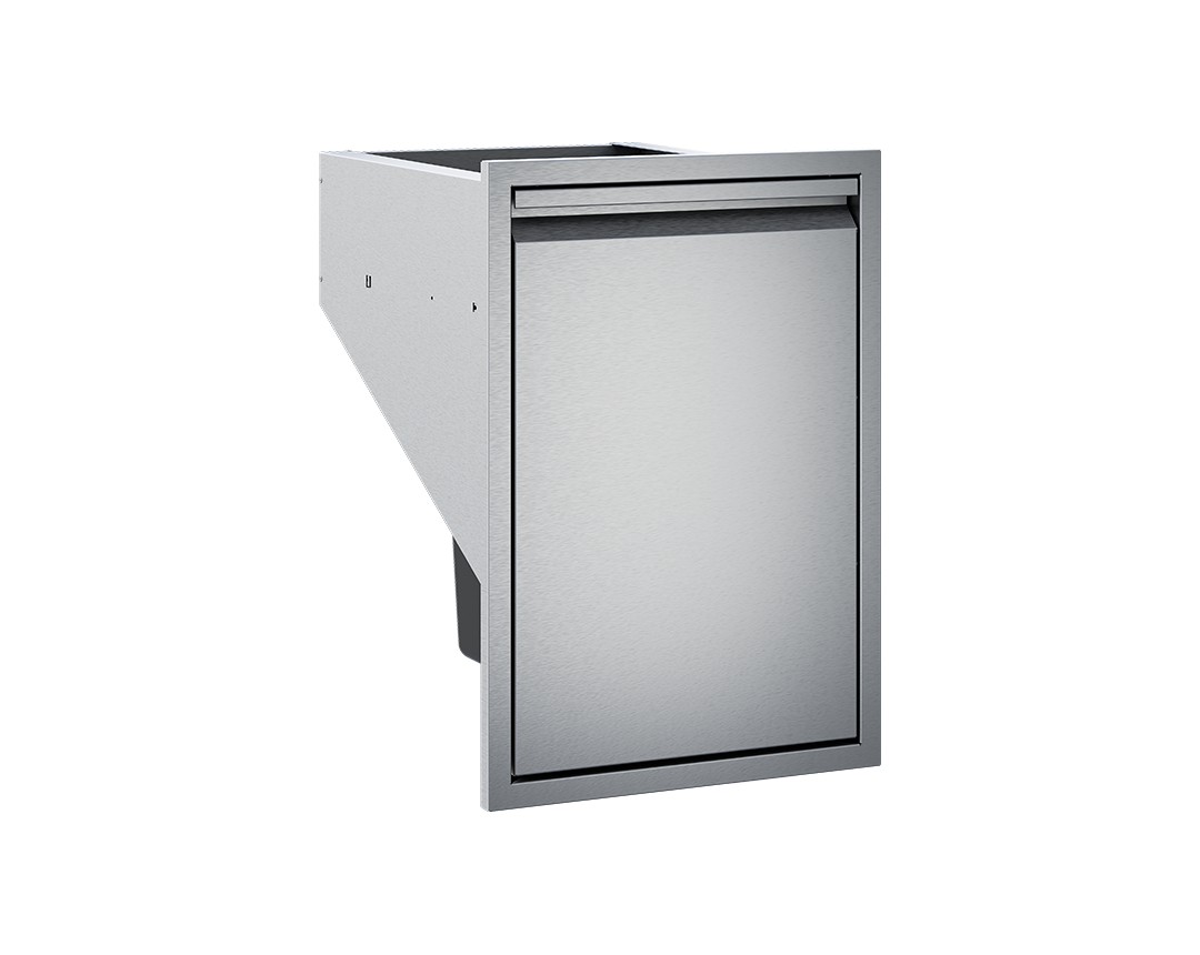 The 18 inch trash drawer holds one or two larger capacity trash containers and has a full pullout drawer for easy access. Use one of the included containers for waste and the other for recycling.