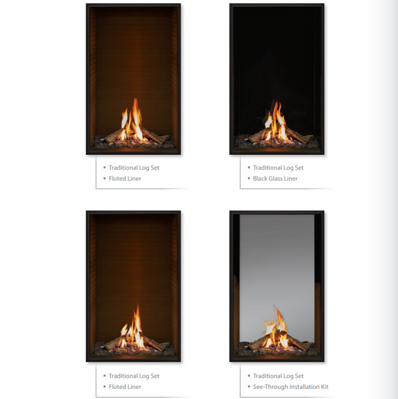 The U33 Tall features an adjustable 59,000 BTU fire with a incredible 34"w X 60"h glass size. The Top lighting kit, remote and outer trim kit are also included in the standard model.